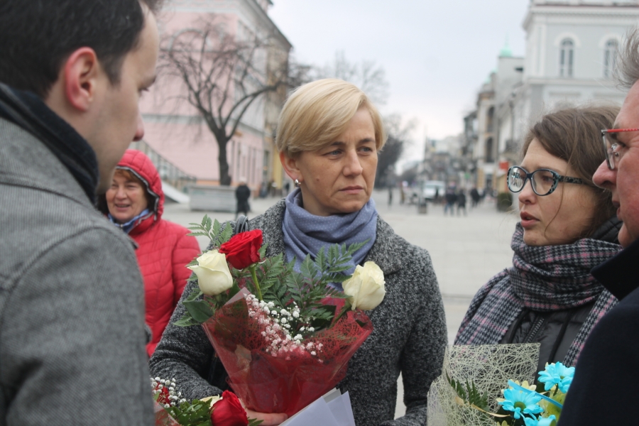 Po konferencji prasowej nie mogło zabraknąć również kwiatów dla Pań, wręczanych radomiankom w centrum miasta.